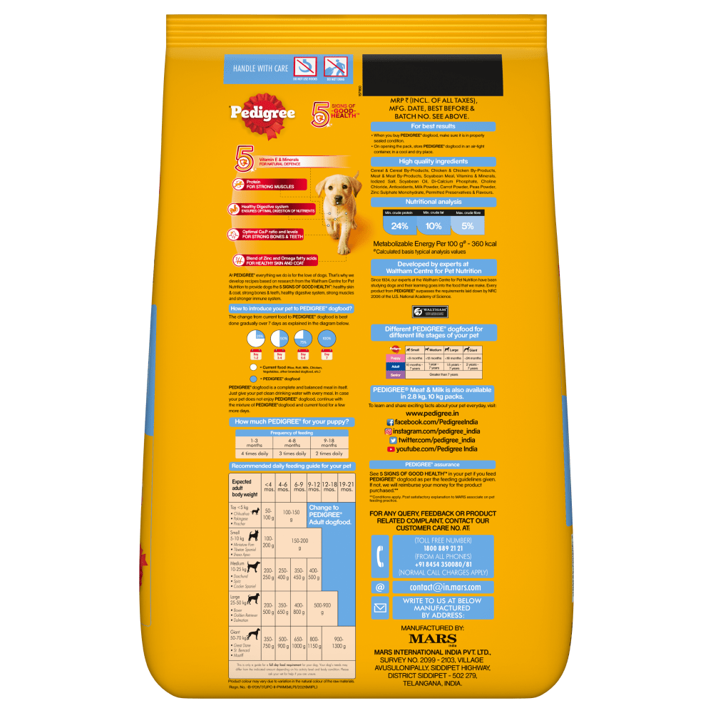 Formulated by nutritionists in the form of pedigree dry dog food, pedigree wet dog food, and treats, Pedigree caters to different dog preferences and dietary needs at different life stages.