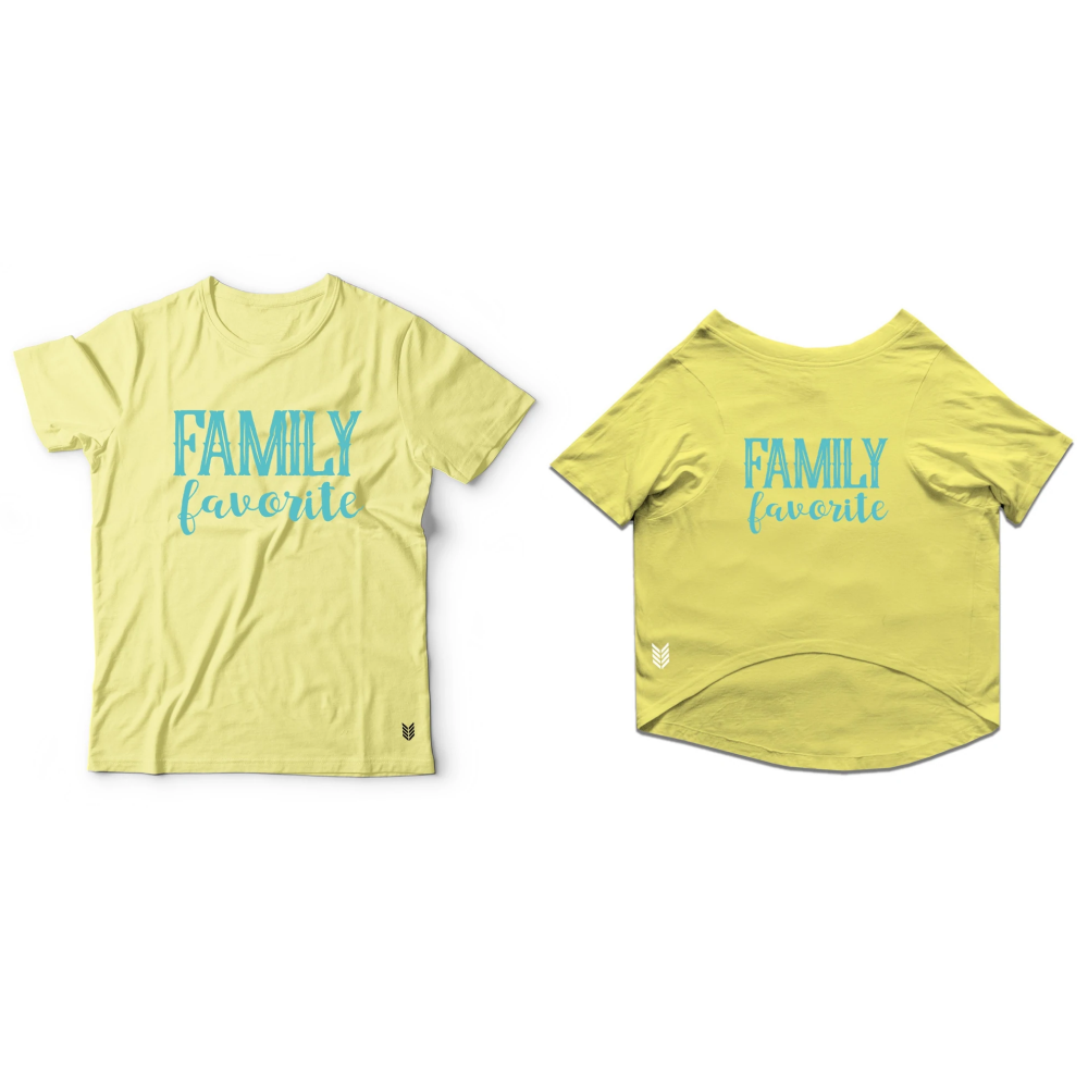 Ruse "Family Favourite" Printed Half Sleeves T Shirt Combos for Cats and Humans (Lemon Yellow)