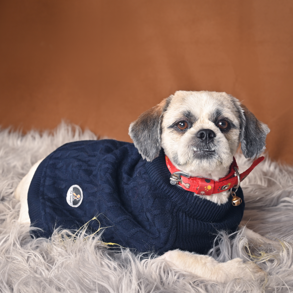 Petsnugs Cable Knit Sweater for Dogs and Cats (Navy Blue)
